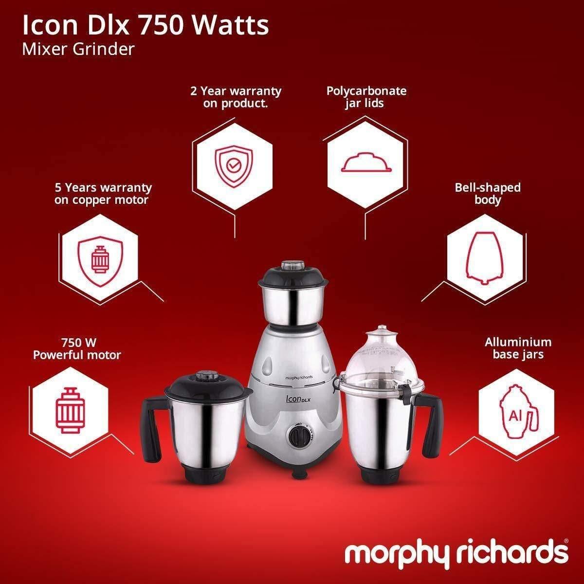 Morphy Richards Icon DLX 750-Watt Mixer Grinder with 3 Jars (Silver)-Home & Kitchen Appliances-dealsplantMorphy Richards Icon DLX 750-Watt Mixer Grinder with 3 Jars (Silver)-Home & Kitchen Appliances-dealsplant
