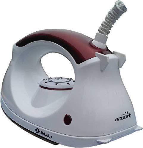 Product enclosed Bajaj Esteela Dry Iron 1000 W for quick heating.This Bajaj dry iron is your one-stop appliance for crisp and creaseless clothes.American Heritage non-stick Teflon coated with sole plate from DuPont, USA for easy glide.Cord winder Indicator light on handle 360 degree swivel cord for effortless maneuvering. Original durable coatings from world’s largest player & inventors of Non-Stick Coatings. Featuring a non-stick coated soleplate, this iron glides smoothly over all types of fabrics, without pulling or wrinkling them. This iron has a smart thermostatic control that helps you set the temperature rightly suited to the fabric you are ironing. The iron in light in weight and easy to handle. It is the ideal and easy solution to your regular ironing troubles.