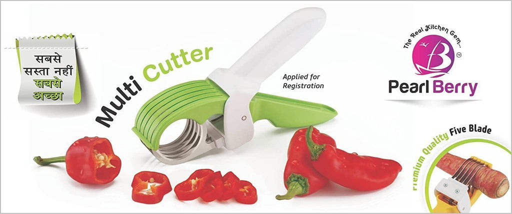 PEARL BERRY introduces this MULTI CUTTER that reduces the workload and makes this tricky task easy. Blades are Made of HIGH grade SS202 stainless steel ANTI-CORROSIVE material for Healthier Future, the blades are sharp and chop the VEGETABLES AND FRUITS finely. The outer body is made of 100 % ABS VIRGIN plastic material and make this kitchen tool sturdy and long-lasting. Always focused on Quality and has ensure that high quality products are manufactured using Superior Quality Raw materials sourced only from certified manufacturers & dealers. Patented cutting mechanism with 5(FIVE)X 40mm diameter and 0.5mm high thickness moving blades for chopping herbs, fruit and vegetables. Ergonomic handle. Easy to cut, no more tears Ideal for Chilly, Lady Fingers, Beans, Spring onion leaves, Banana, Carrot, Cucumber, Radish etc.