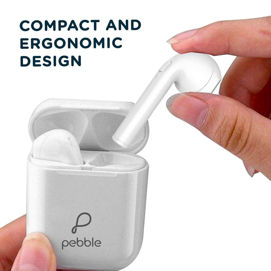 Pebble Duet True Wireless Ear Pods Headset with Mic (White) with Bluetooth V5.0, Immersive Audio, Up to 12H Total Playtime, IPX4 Water & Sweat Resistance, Ergonomic Design and Instant Voice Assistant